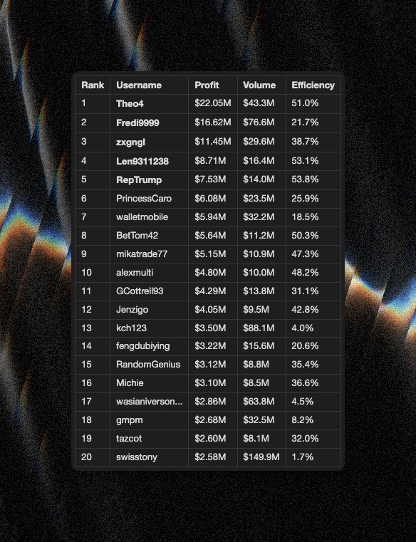 Top 20 Polymarket Earners