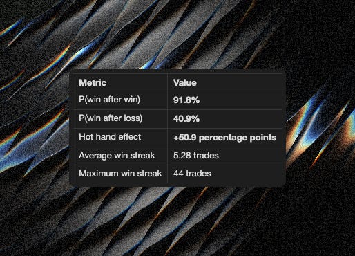 This isn’t momentum—it’s skill revealing itself through sequential outcomes. Good traders have consistent edge; bad traders don’t.